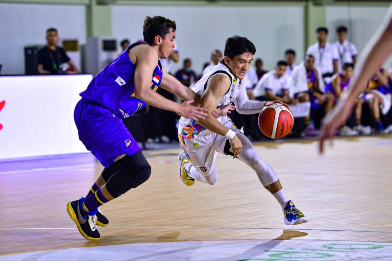 Kapten tim Bali United Basketball memimpin kemenangan timnya atas Tangerang Hawks Basketball yang berakhir dengan skor …