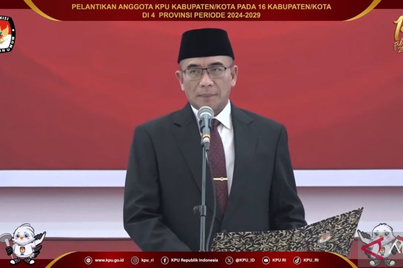 Komisi Pemilihan Umum (KPU) RI melantik 80 anggota KPU dari 16 kabupaten/kota di empat provinsi se-Indonesia periode …