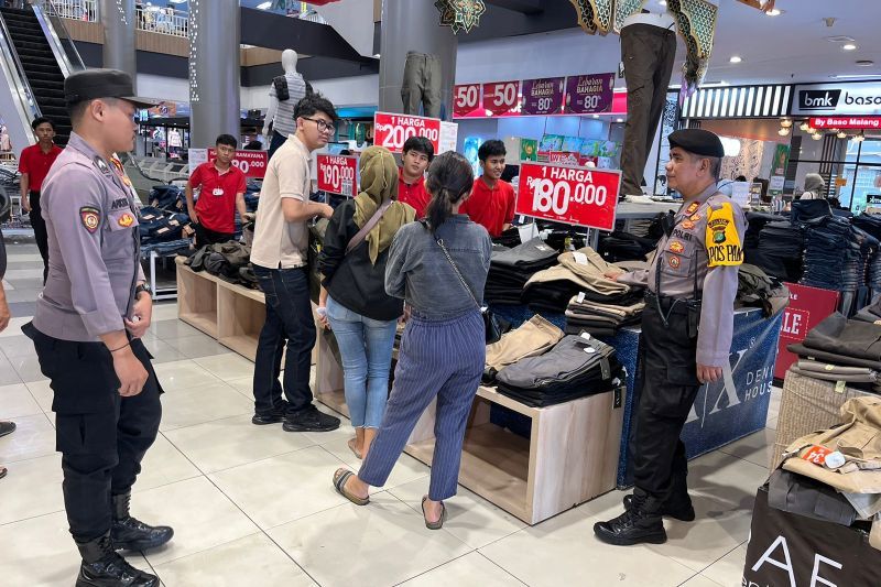 Personel Kepolisian melakukan patroli di pusat perbelanjaan terutama di Pasar Cengkareng dan Ciplaz Ramayana …