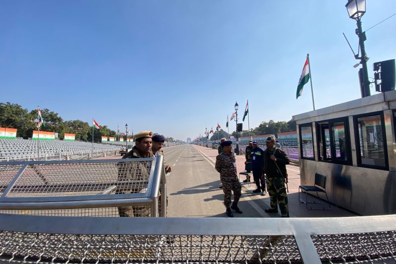 Suasana di Monumen Nasional Gerbang India (India Gate) yang menjadi lokasi Parade Hari Republik India 2025 di New …
