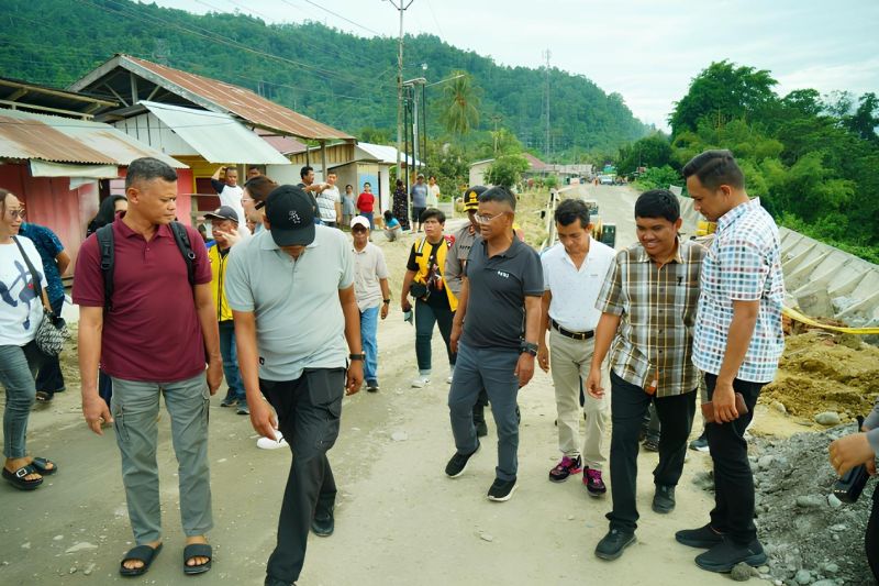 Gubernur Sulawesi Tengah (Sulteng) Rusdy Mastura meninjau penanganan jalan Trans Sulawesi di Desa Watuawu, Kecamatan …