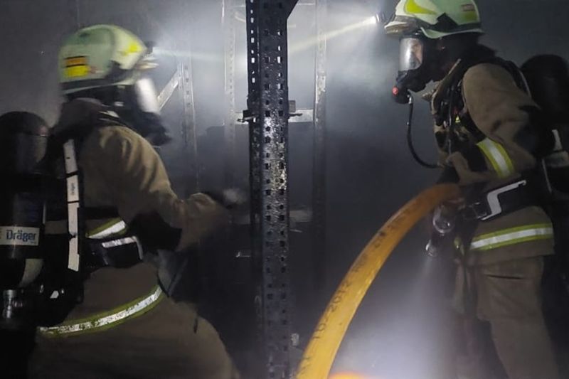 Petugas berhasil memadamkan kebakaran gudang PT. Exinergy Indonesia, di Jalan Panjang No. 26, RT.06/RW.01, Kedoya …