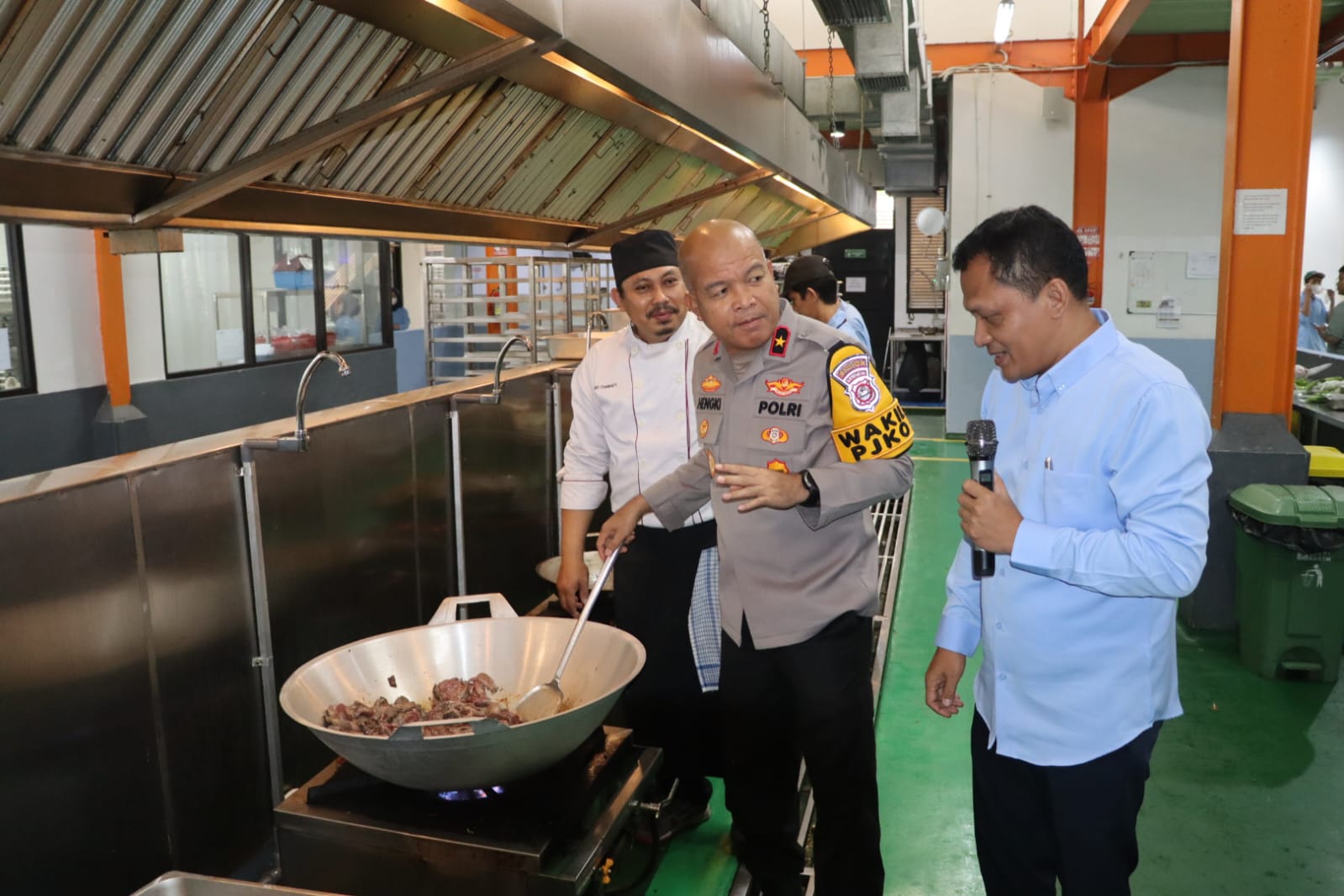Hengki juga turut mengecek dapur SPPG untuk memastikan alur produksi berjalan dengan aman dan higienitas. Didampingi pengurus SPPG, Hengki menyimak penjelasan yang diberikan.