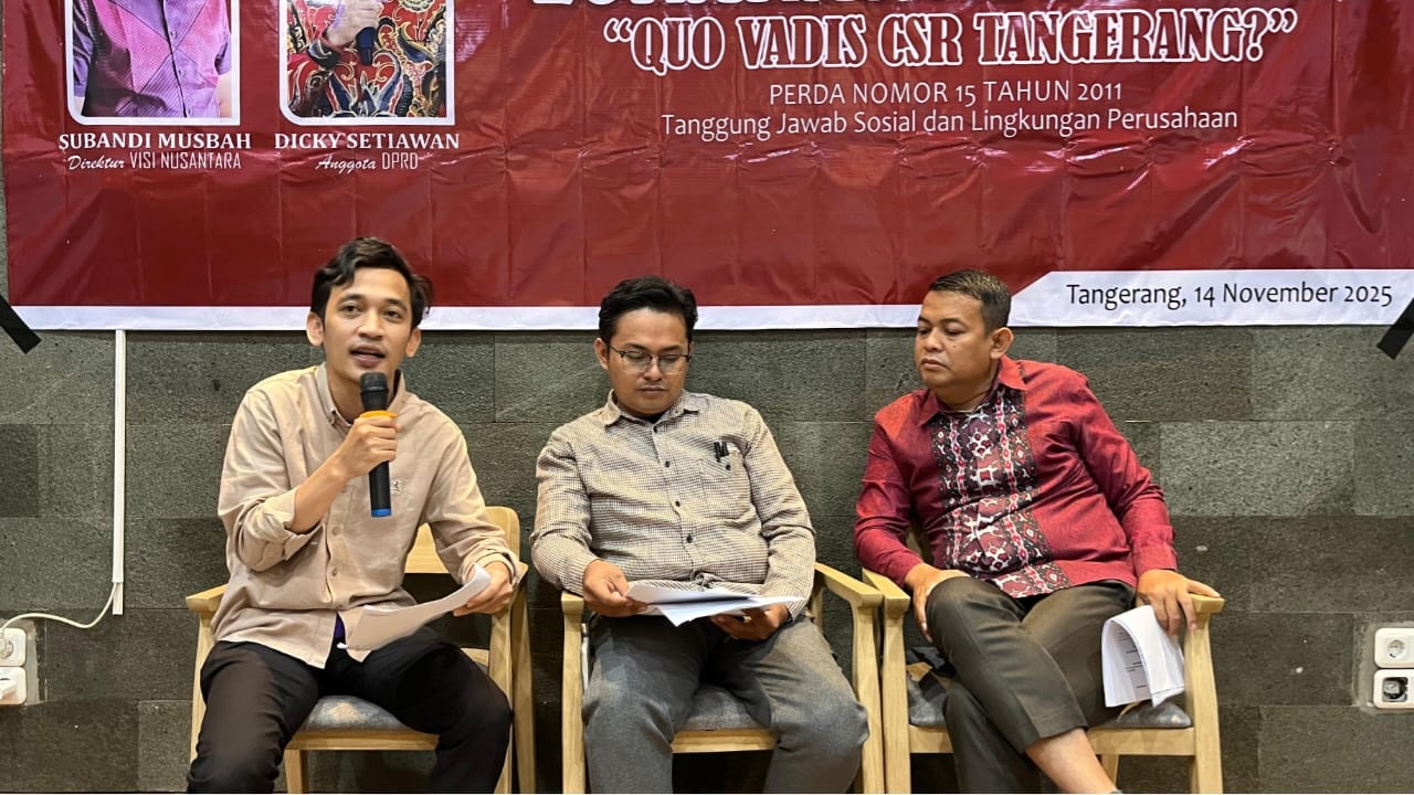 Hal tersebut disampaikan Dicky Setiawan saat menyampaikan materi Realisasi CSR Perusahaan dalam acara Lokakarya Daerah bertajuk Quo Vadis CSR Kabupaten Tangerang?, yang dilaksanakan oleh Bina Mulia Institute di Upnormal Coffee, Citra Raya, Jumat (14/11/2025). Acara ini dihadiri puluhan organisasi masyarakat sipil.